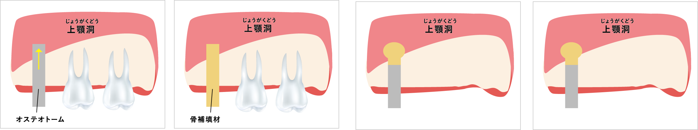 ソケットリフトよりも傷口が大きくなりますが、再生できる骨量も多くなります。