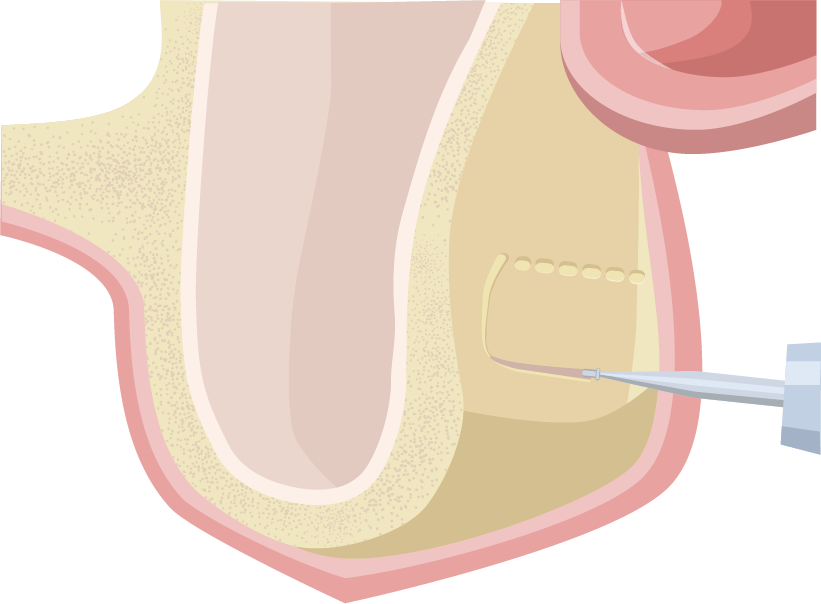 インプラントを埋め込む穴ではなく、顎の側面からアプローチするのが大きな特徴です。